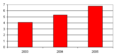 В 2005 г. российский рынок информационной безопасности в очередной раз продемонстрировал уверенный рост. Суммарная выручка тридцати компаний рейтинга CNewsSecurity 2005 выросла на 38,4 % и составила 6,78 млрд. рублей. Тем не менее, несмотря на более чем уверенные показатели роста, впервые с момента проведения рейтинга темп роста суммарной выручки ИБ-компаний оказался сравним с показателем рейтинга CNews100. Если в 2004 г. соотношение составило 33 % против 14 % в пользу ИБ-компаний, то в 2005 г. это уже 38,4 % против 37,7 %.